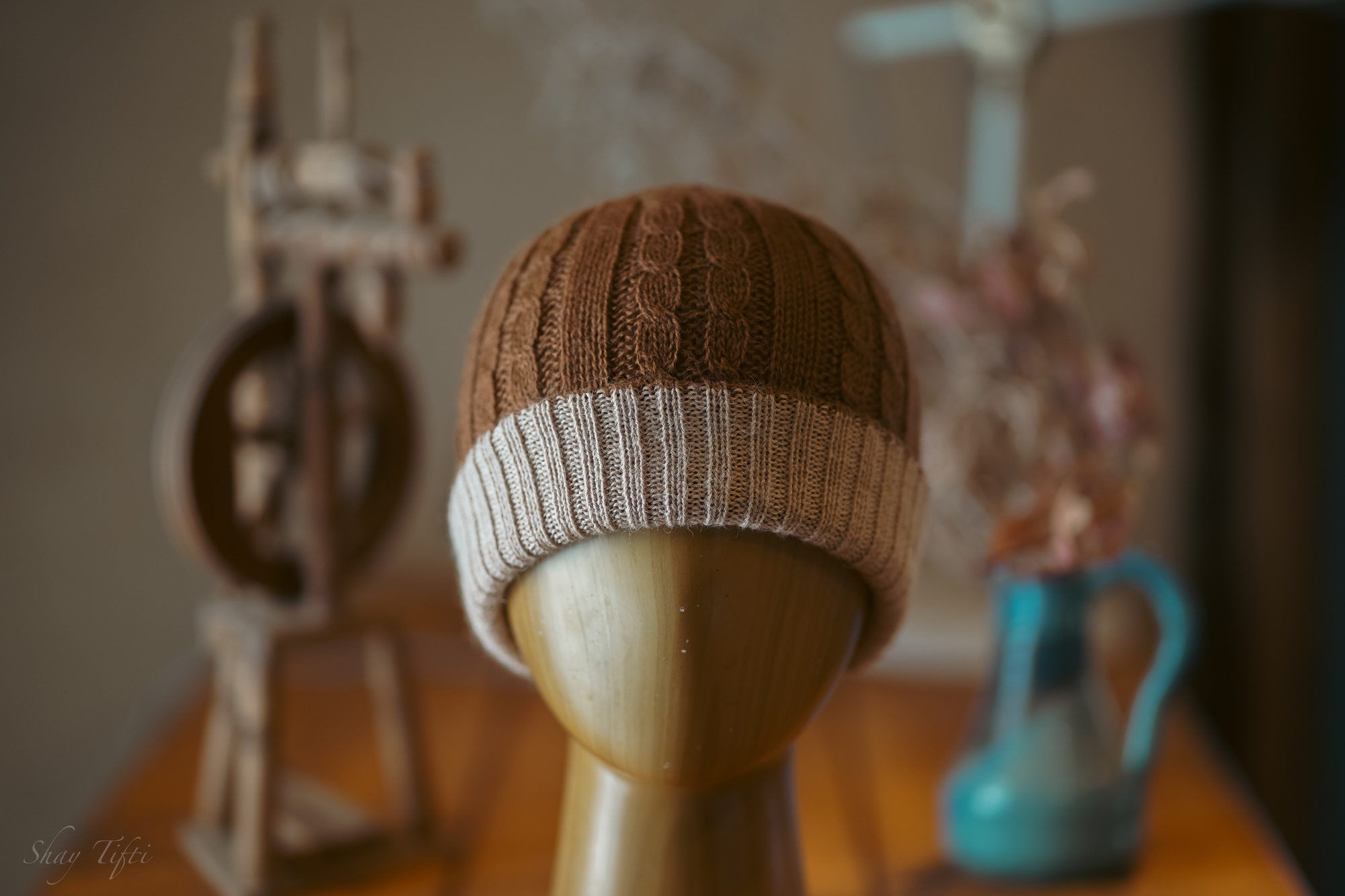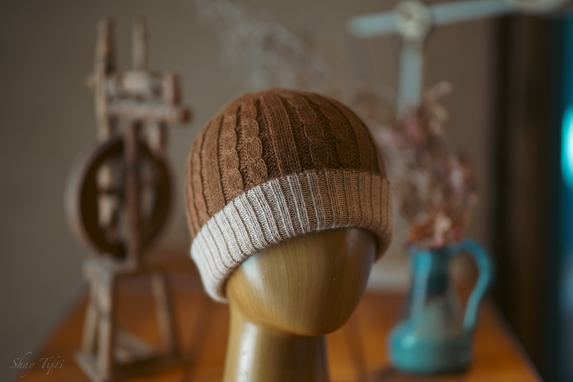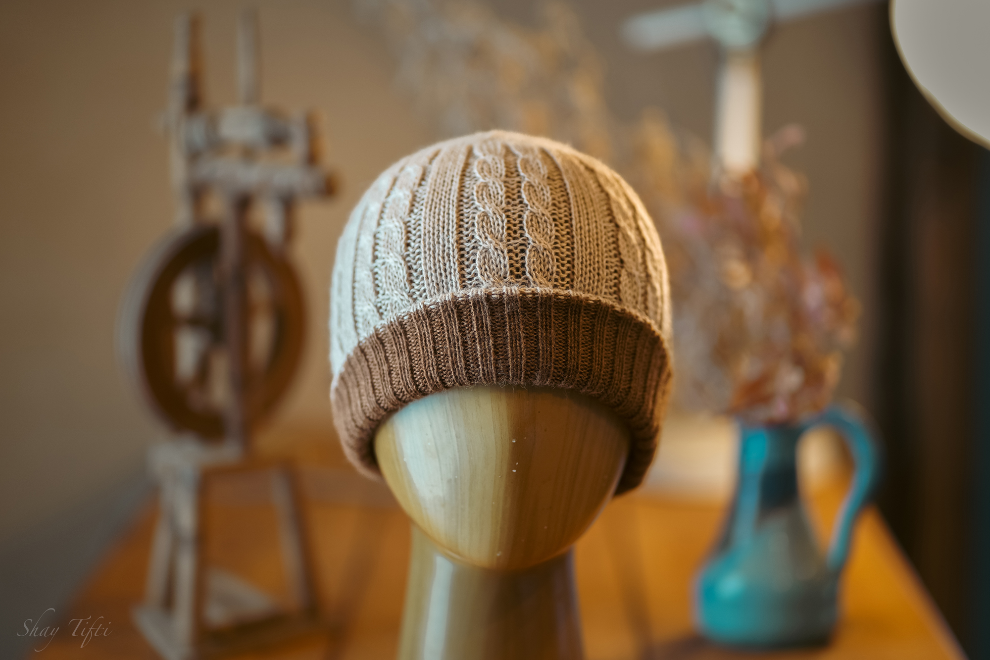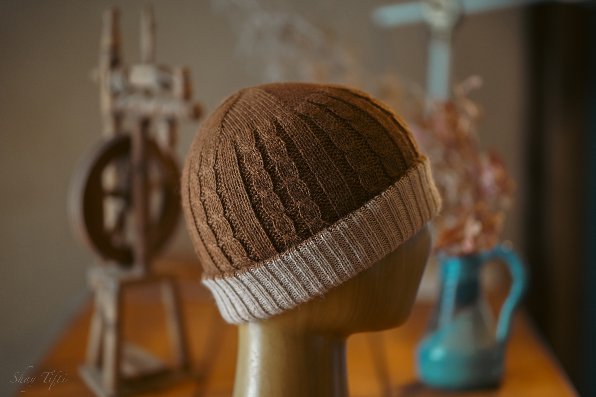 כובע דו צדדי 100% צמר אלפקה – חום בהיר/קרם